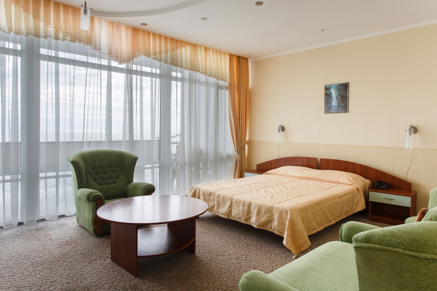 В санатории есть двухместные однокомнатные номера типа Полулюкс, которые расположены в главном корпусе. Это большие номера, которые имеют площадь 36 кв.м. В комнате имеется хорошая мебель, двуспальная кровать и диван, бытовая техника и набор посуды. Номера оборудованы кондиционерами.